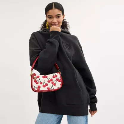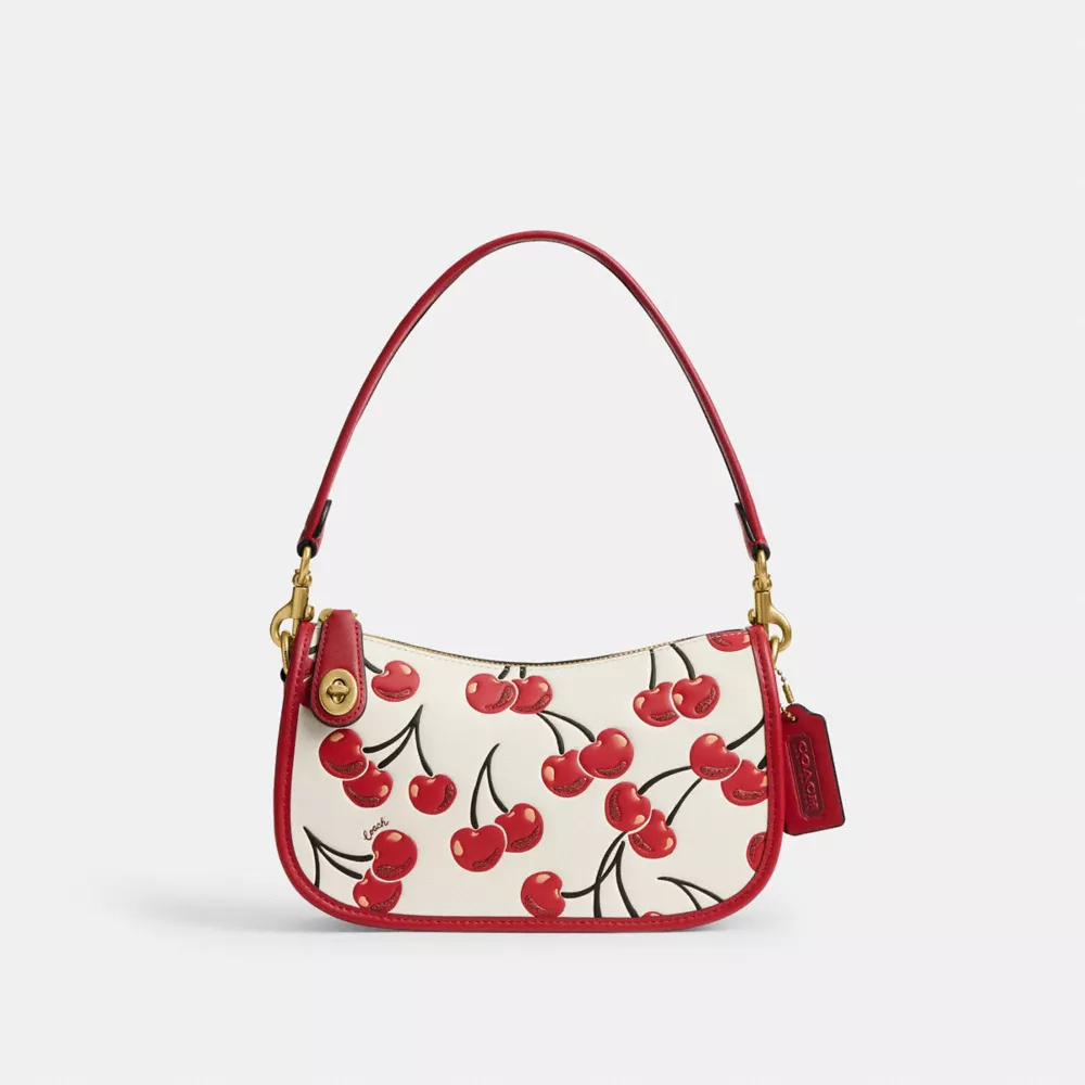 The Swinger Bag is part of The Coach Originals, a collection of archival-inspired bags that celebrates our legacy and authentic New York heritage. This streamlined glovetanned leather style is based on a 1987 Coach design reimagined for today. Featuring our iconic turnlock closure and a cheerful cherry print detailed with glittery accents for a touch of sparkle, the zip-top short-strap shoulder bag sits just beneath the underarm for hands-free convenience and includes a detachable strap to wear crossbody. Some styles are just too good to leave in the archives.