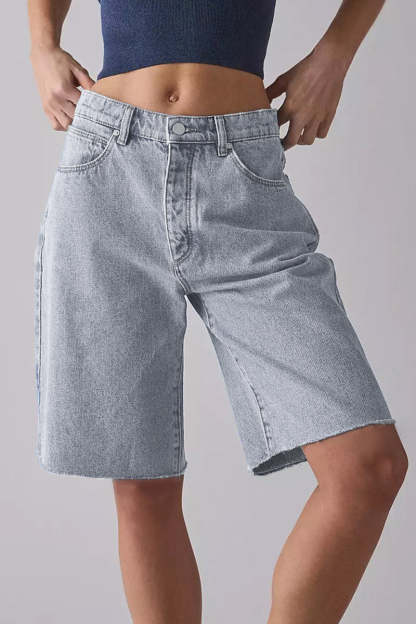 Classy Mid-Rise Tassel Hem Baggy Denim Shorts