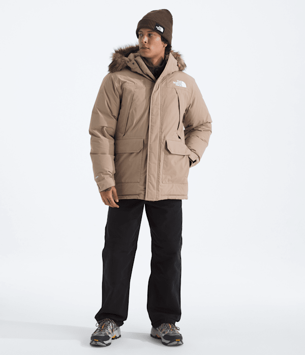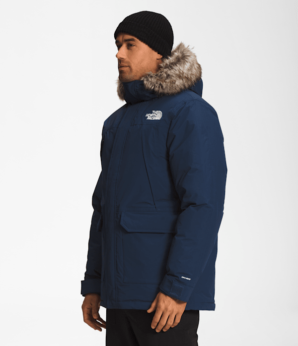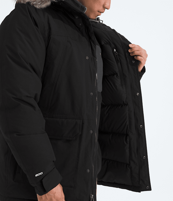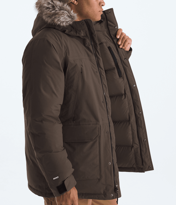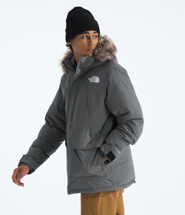 The McMurdo Parka, our longest men's coat, has a long list of must-have features. It is windproof, waterproof, breathable, and insulated with 600-fill recycled down.