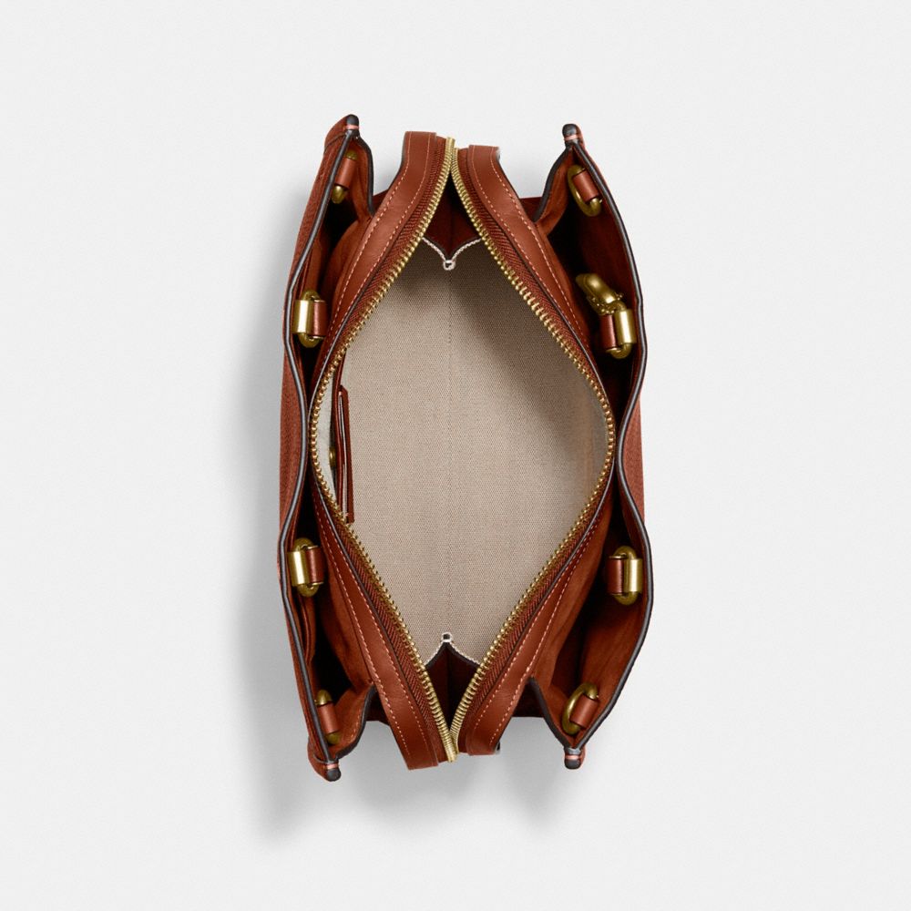 Detachable strap with 21 1/2" drop for shoulder or crossbody wear