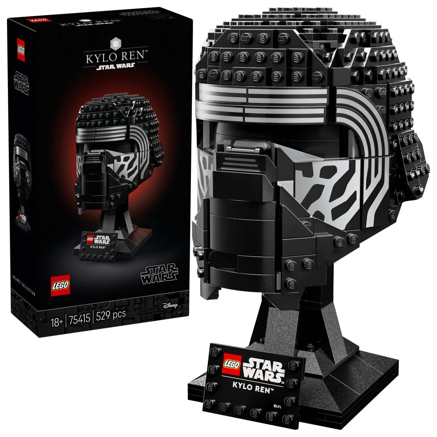 - Create a Star Wars™ display – Recreate instantly recognisable features of Kylo Ren’s iconic helmet in LEGO® style and display your creation on the buildable stand with nameplate