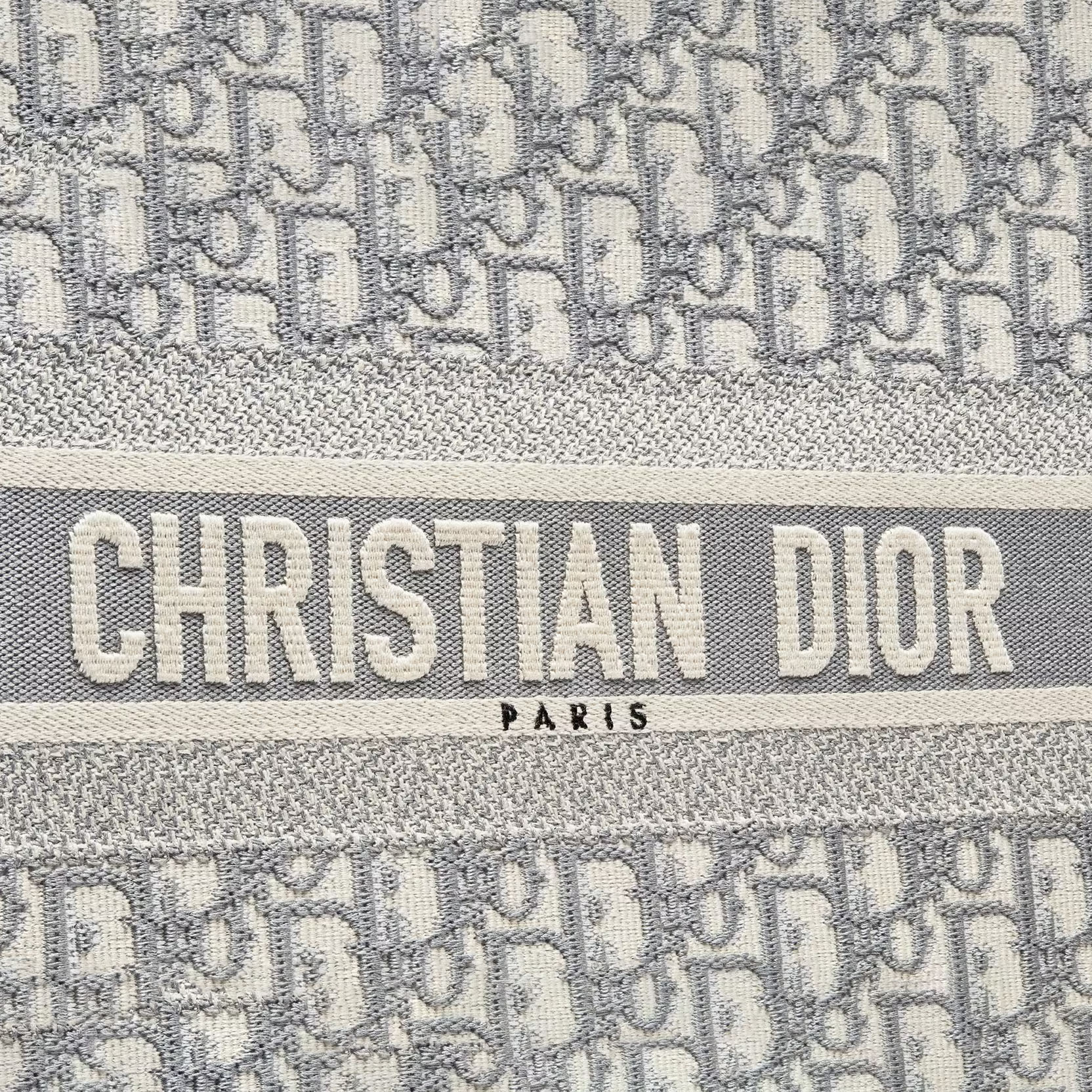 Introduced by Maria Grazia Chiuri, Creative Director of Christian , the Book Tote has become a staple of the aesthetic. Designed to hold all the daily essentials, the style is fully embroidered with the ecru and gray Oblique motif. Adorned with the Christian Paris signature on the front, the medium tote exemplifies the House's signature savoir-faire and may be carried by hand or worn over the shoulder.