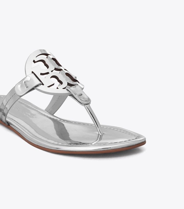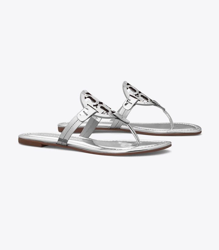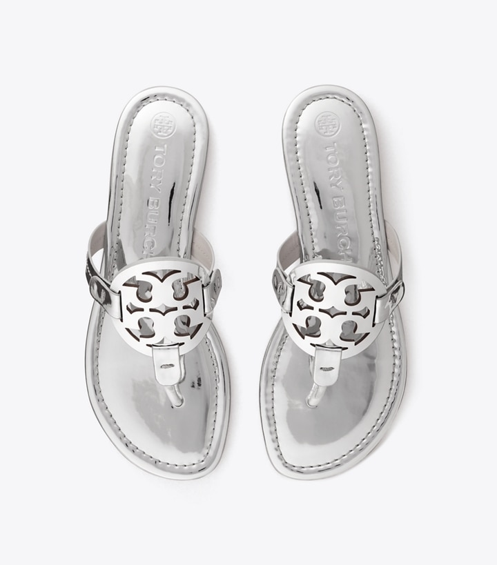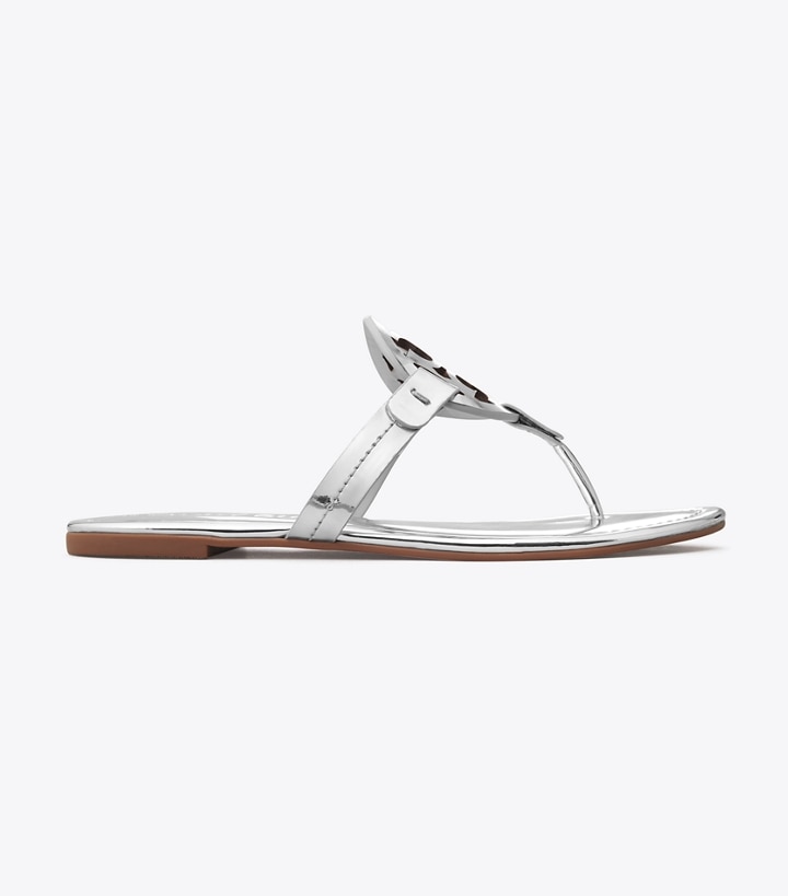 Our iconic Miller Sandal, in mirrored leather, features an ultra-comfortable cushioned insole, a seamlessly wrapped toe post and a laser-cut double 'T' with hand-painted edges, positioned to hug the foot for a perfect fit. Always chic, it's a beloved classic for sunny days and getaways.