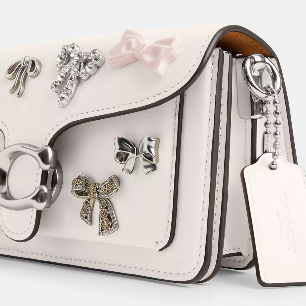A modern take on an archival 1970s Coach design, our structured Tabby shoulder bag is crafted of refined leather embellished with an eclectic mix of colorful and metallic bow appliqué for the perfect finishing touch. Smaller than the 26, the petite 20 features two detachable straps to carry by hand, style as a short shoulder bag or wear crossbody. It’s finished with our Signature hardware for an iconic touch.