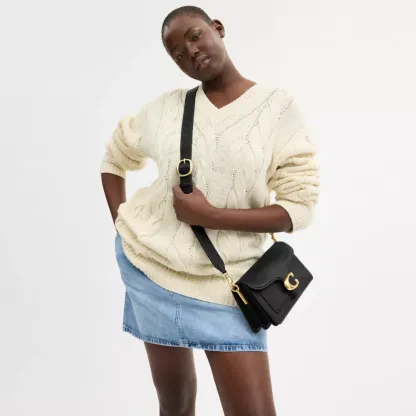 A modern take on an archival 1970s Cothtach design, our structured Tabby shoulder bag is crafted of polished pebble leather. Finished with our Signature hardware for an iconic touch, the compact 26 features two detachable straps to carry by hand, style as a short shoulder bag or wear crossbody.