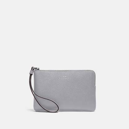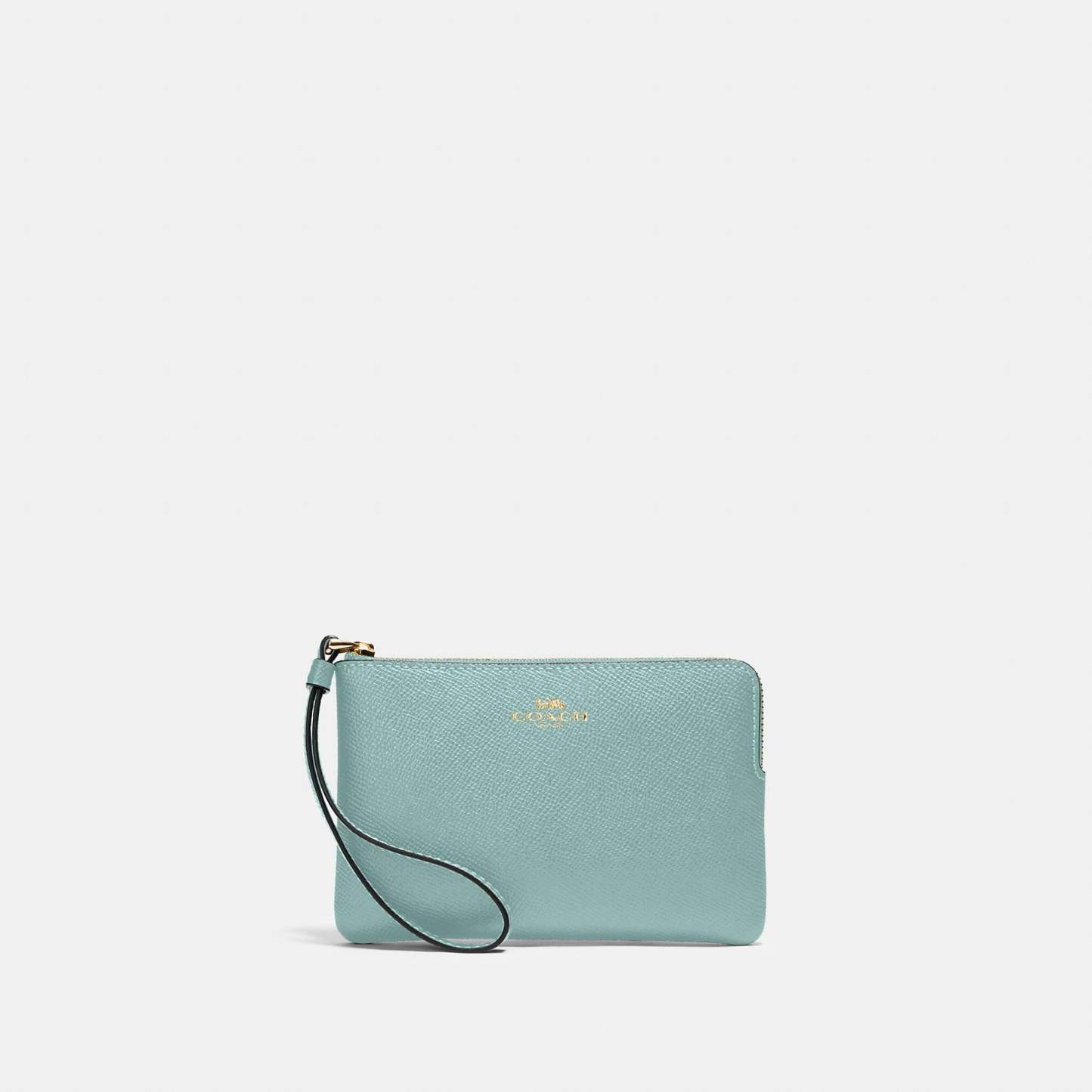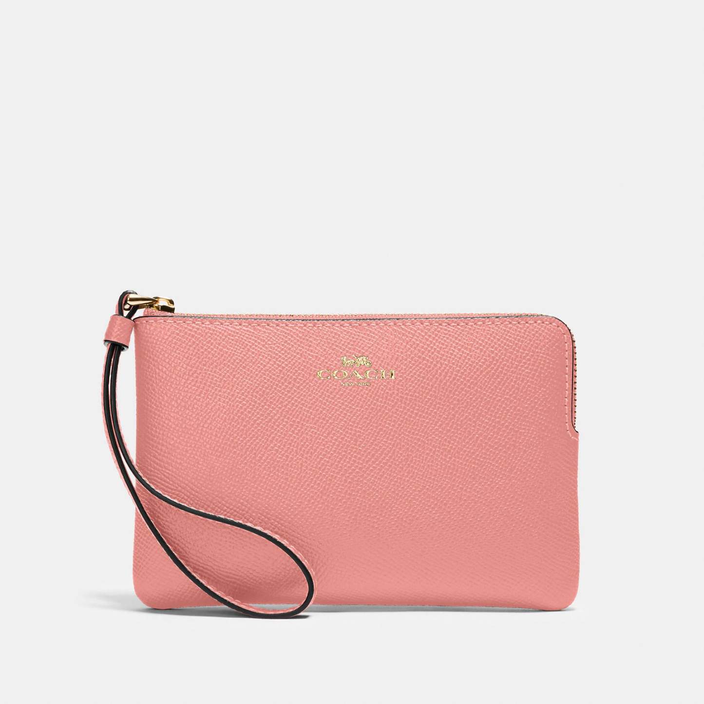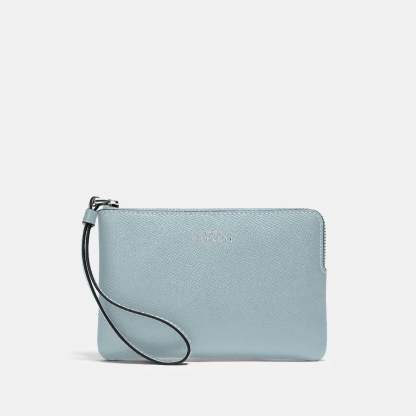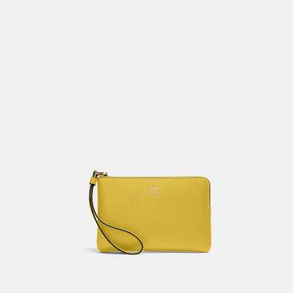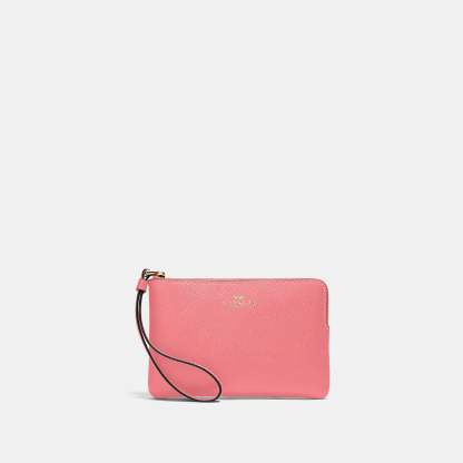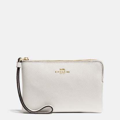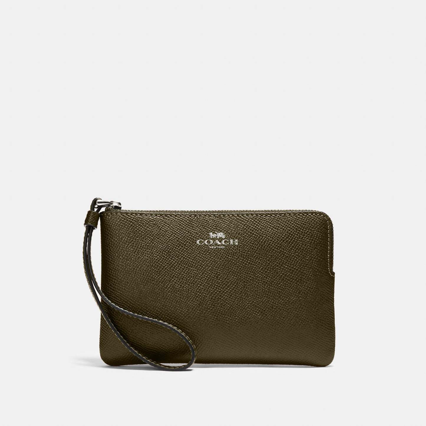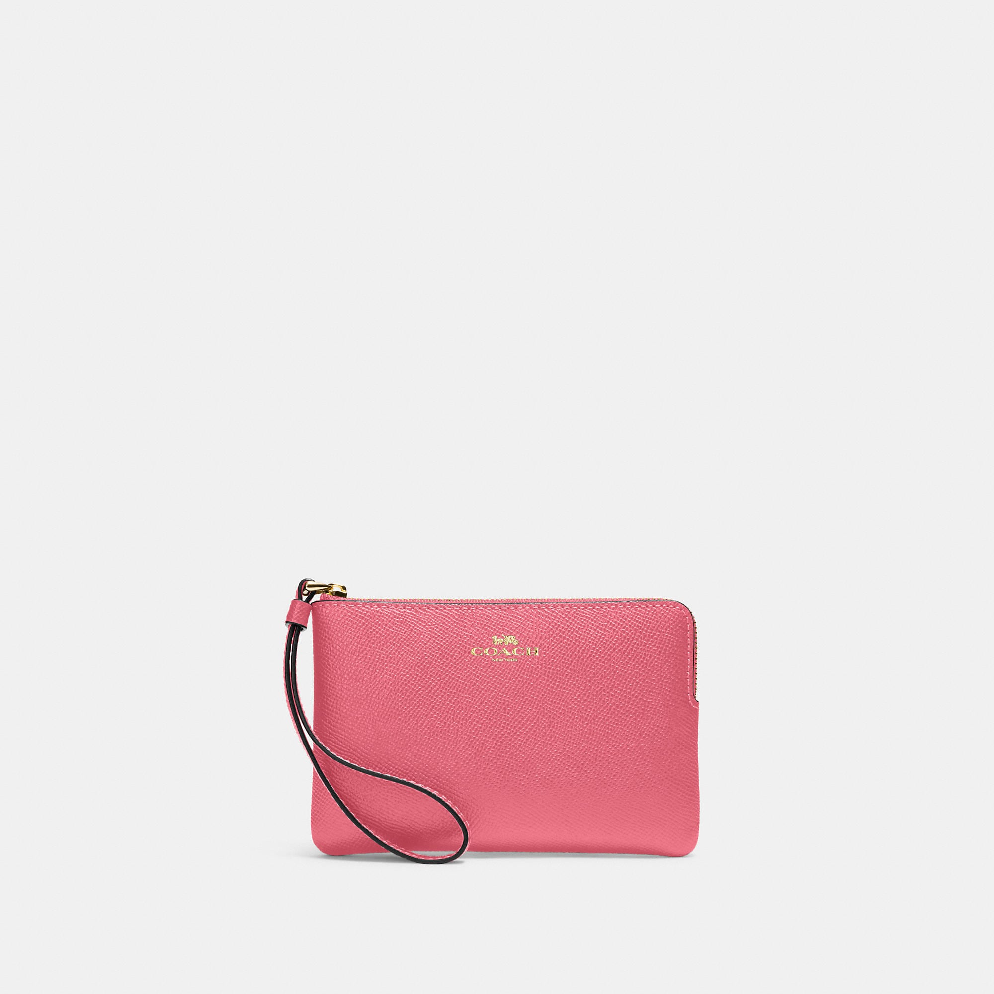 Crossgrain leather Two credit card slots Zip-top closure fabric lining Wrist strap attached 6 1/4 (L) x 4 (H) x 1/2 (W) Style No. 58032