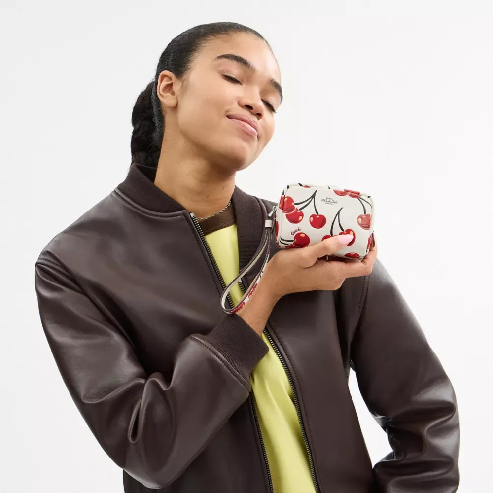 Pouch Wristlet With Cherry Print