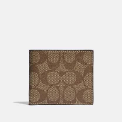 Signature coated canvas Six credit card slots Full-length bill compartment ID window 4 (L) x 3 (H) x 1/2 (W) Style No. 66551 | Outlet Id Billfold Wallet In Signature Canvas - Beige