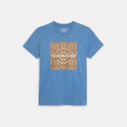 100% organic cotton Length - 26 1/2 Style No. C8775 | Outlet Signature T-Shirt In Organic Cotton - Blue, Size - Medium