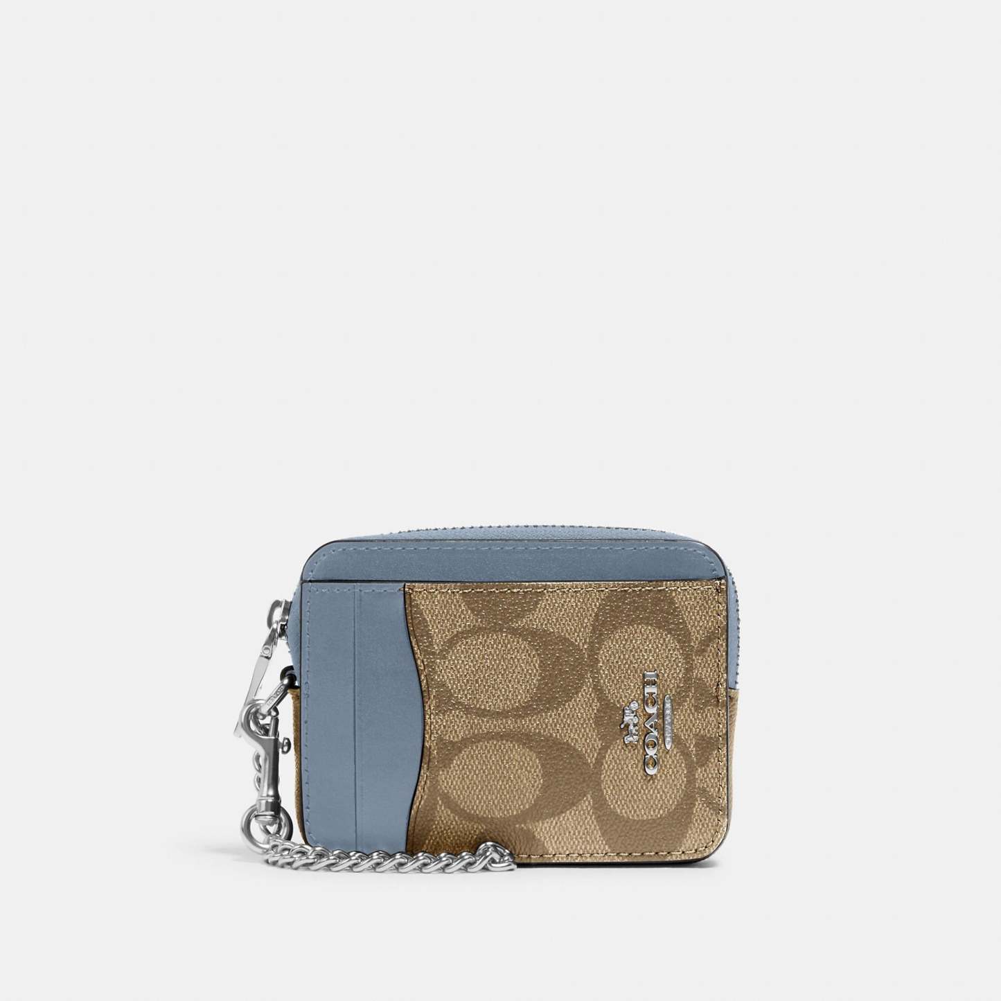 Signature coated canvas and smooth leather Two credit card slots ID window Open pockets Zip compartment Chain wrist strap with dogleash clip attached 3 (L) x 4 1/4 (H) x 3/4 (W) Style No. C0058 | Outlet Zip Card Case In Signature Canvas - Multi