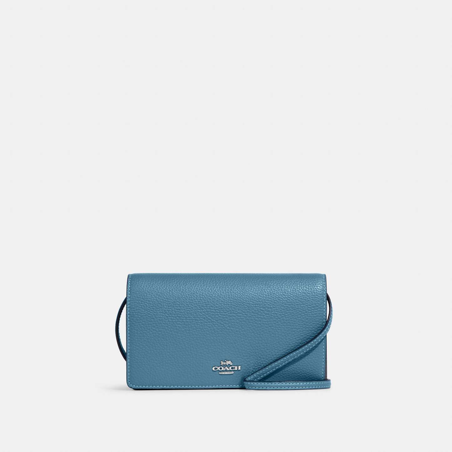 Refined pebble leather Eight credit card slots Full-length bill compartment Inside zip pocket Snap closure Outside slip pocket Detachable strap with 23 drop for shoulder or crossbody wear 8 (L) x 4 3/4 (H) x 1 1/2 (W) Style No. 3037