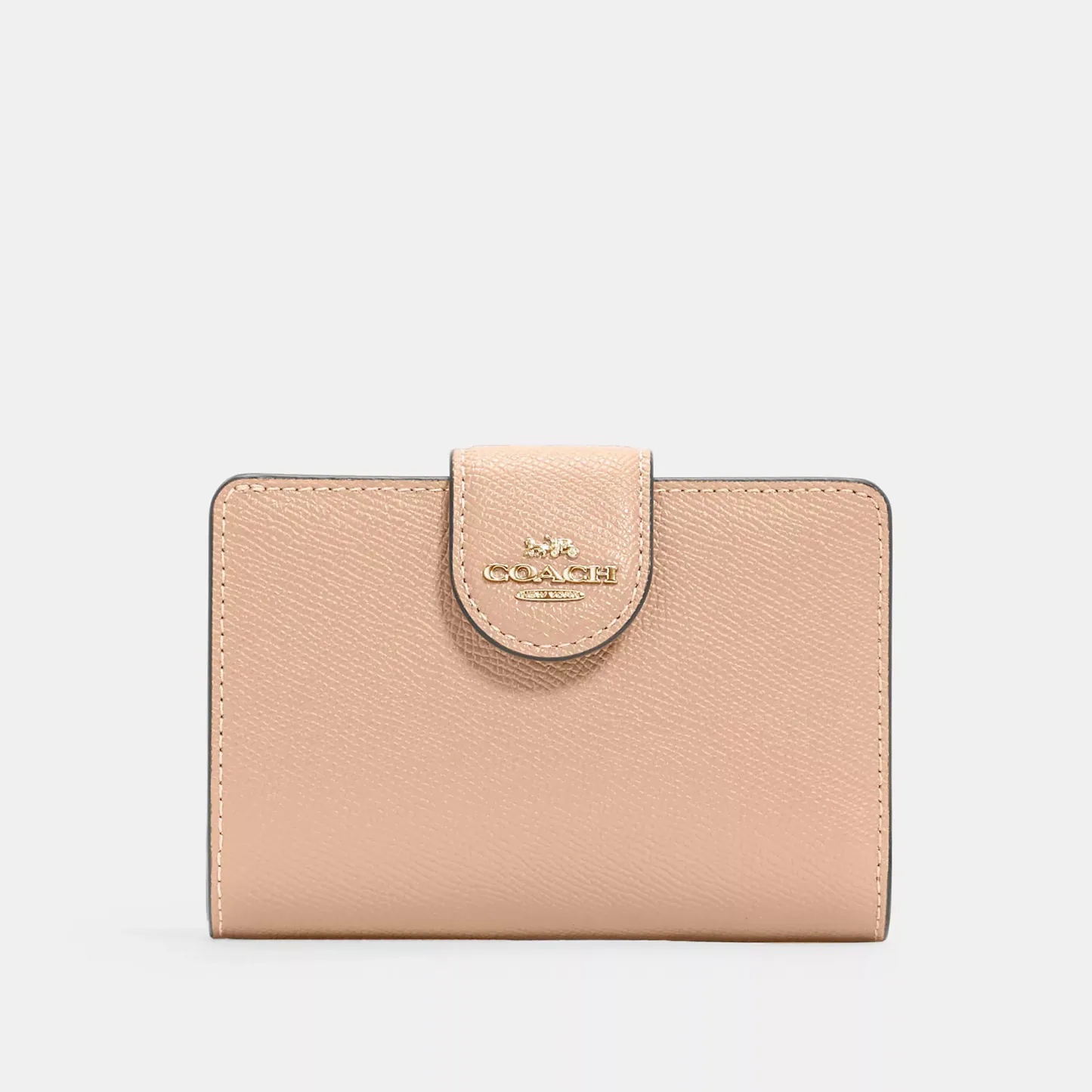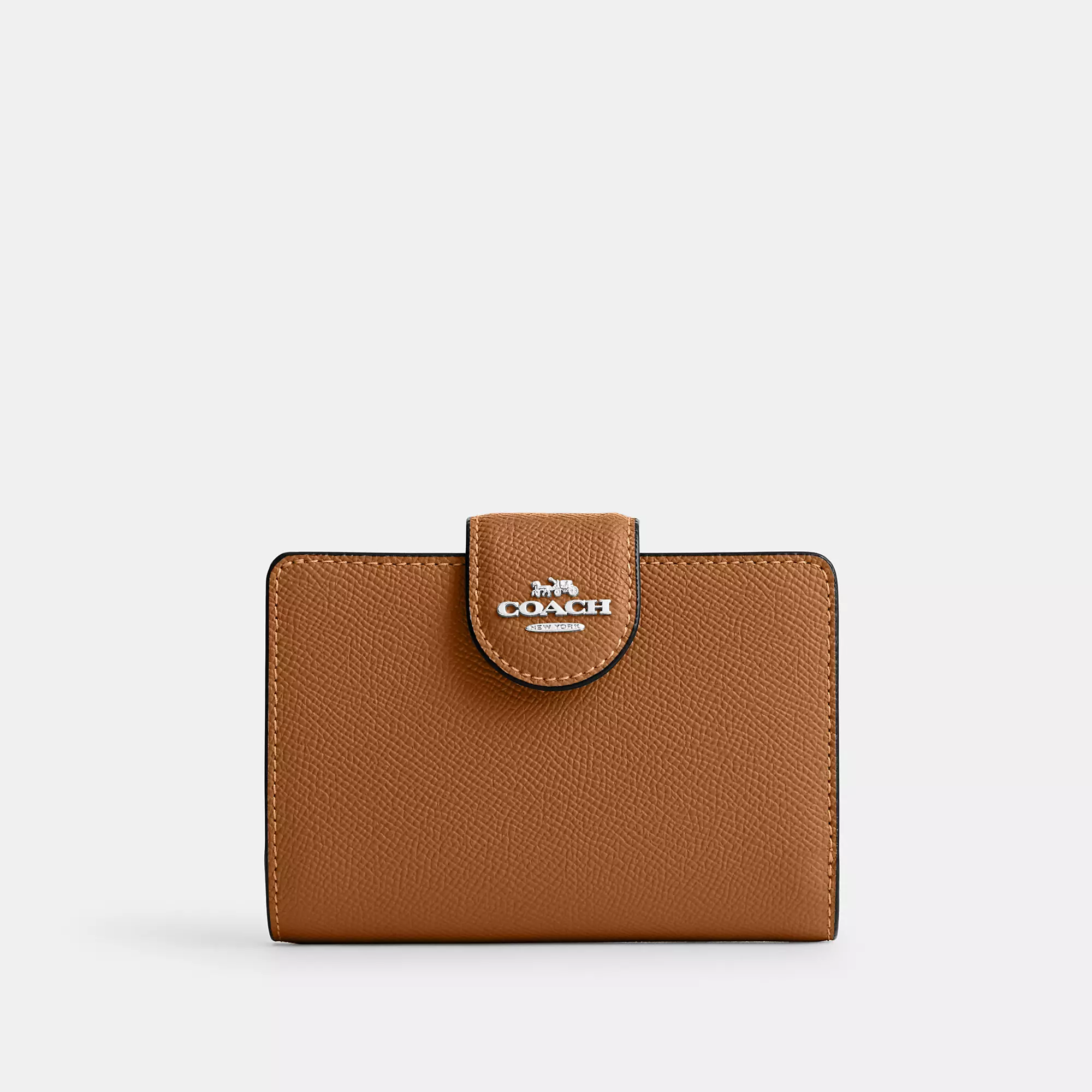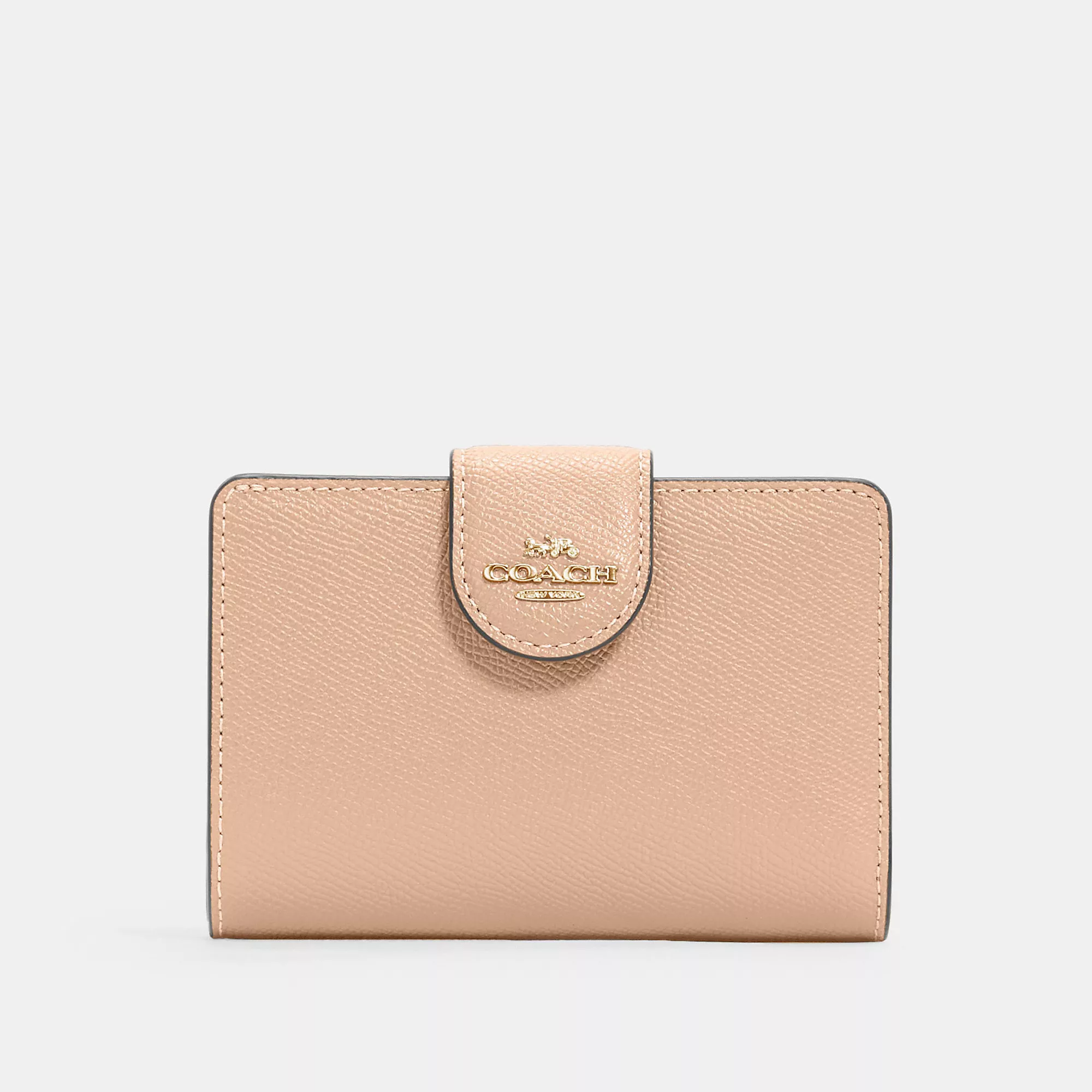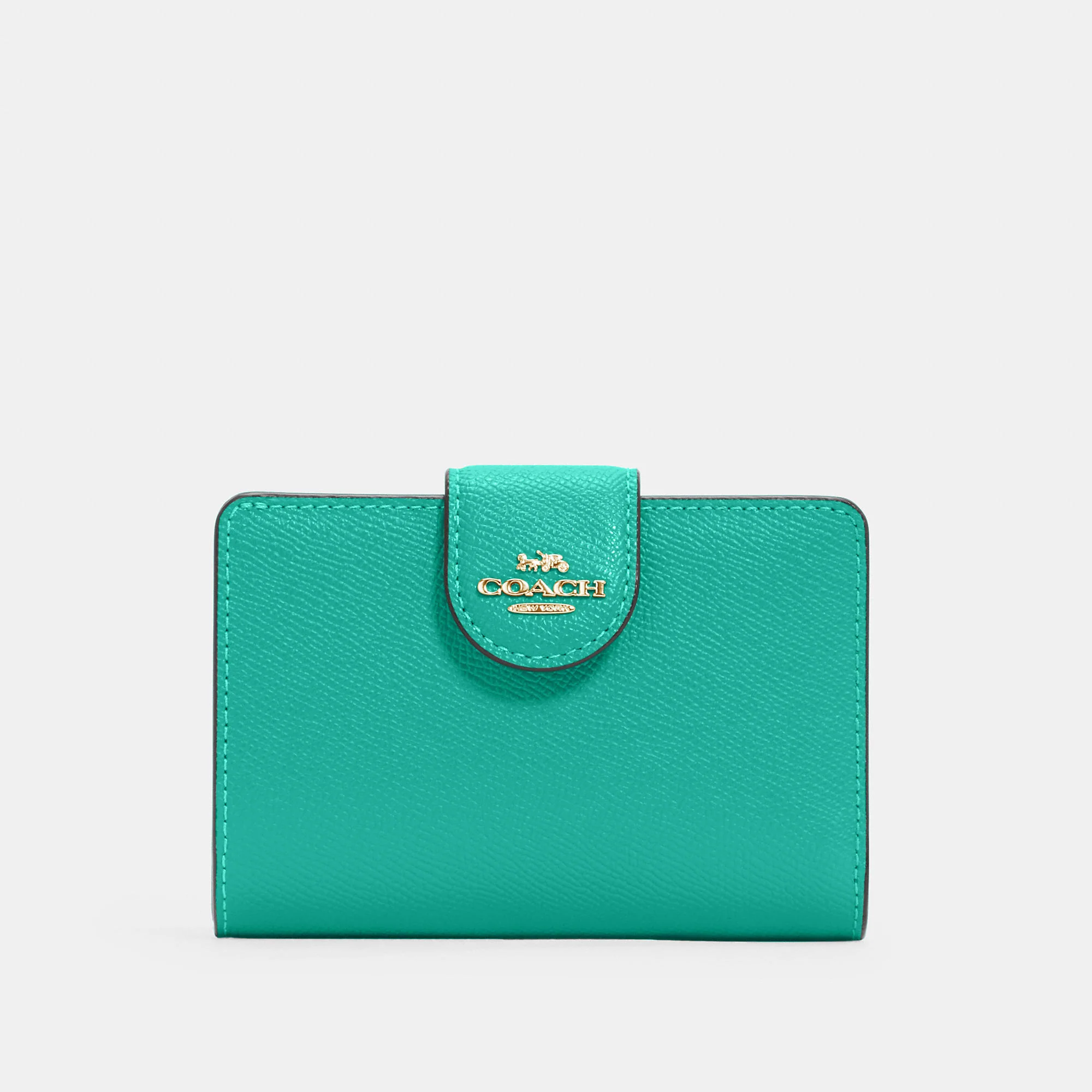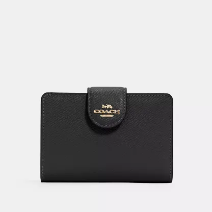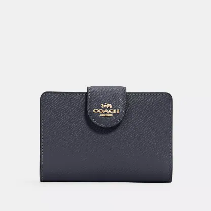 Crossgrain leather Seven credit card slots Bill compartment ID window Snap closure Zip coin pocket 5 (L) x 3 1/2 (H) x 1/2 (W) Style No. 6390 | Outlet Medium Corner Zip Wallet - Gold/Midnight