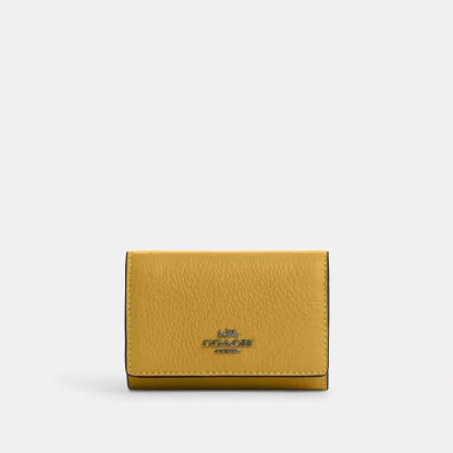 Refined pebble leather Three credit card slots Full-length bill compartment Snap closure Zip coin pocket 4 (L) x 3 (H) x 1 1/4 (W) Style No. CM238 | Outlet Micro Wallet - Yellow