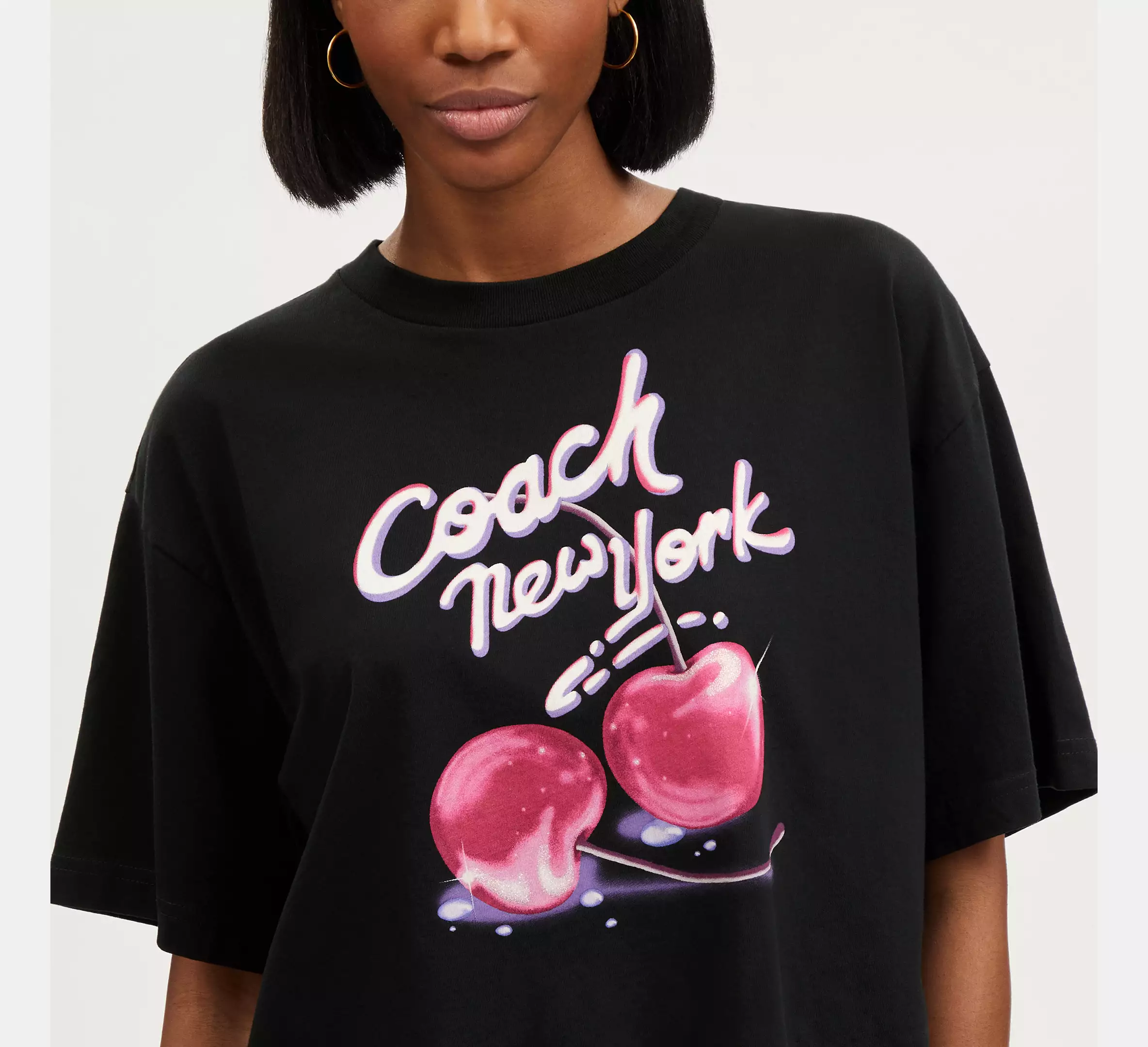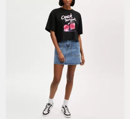 Airbrushed Cherry Print Cropped T Shirt In Organic Cotton