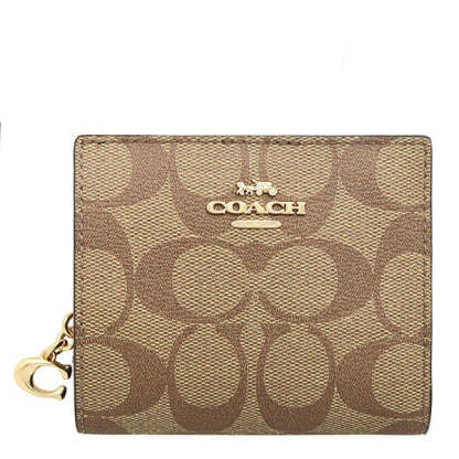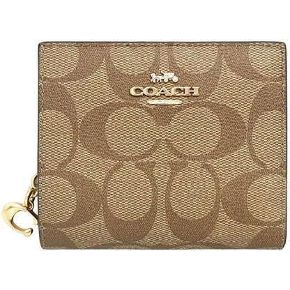Signature coated canvas and smooth leather| Three credit card slots| ID window| Full-length bill compartment| Snap closure| Outside zip coin pocket| 4 1/4" (L) x 3 1/2" (H) x 1" (W)