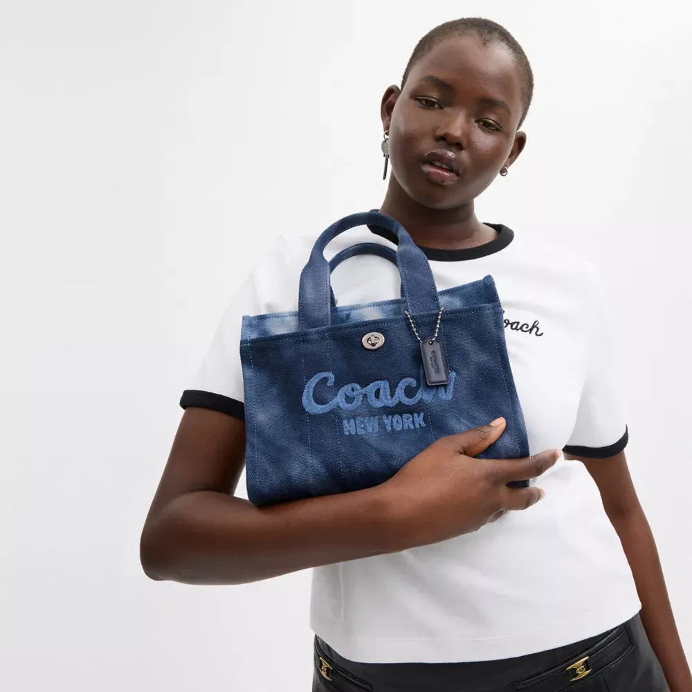 Carry as much (or as little) as you like with our lightweight Cargo tote. Detailed with our cursive Cothtach script embroidery and iconic turnlock closure, this compact 26 has an open interior with room for an iPad, two outside pockets for easy organization and a removable webbing strap for shoulder or crossbody wear. Specially tie-dyed with our sophisticated spin on the classic pattern, this versatile carryall is made with cotton sourced from farms that use regenerative agricultural practices* and inspired by our commitment to reducing our impact on the planet. Now no matter where you go with it, you’ll always be toting around a little extra love for the planet.