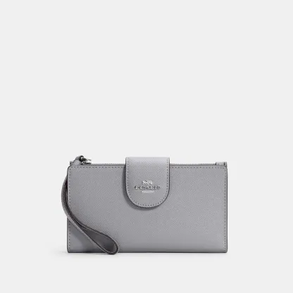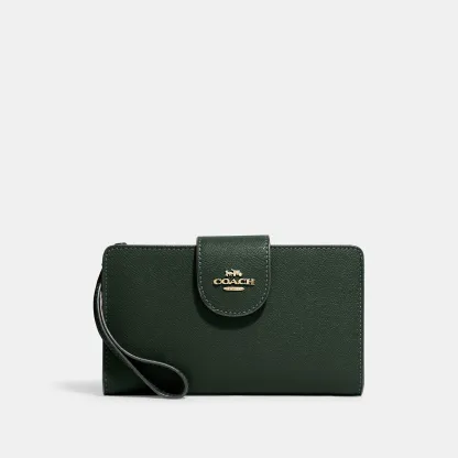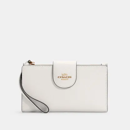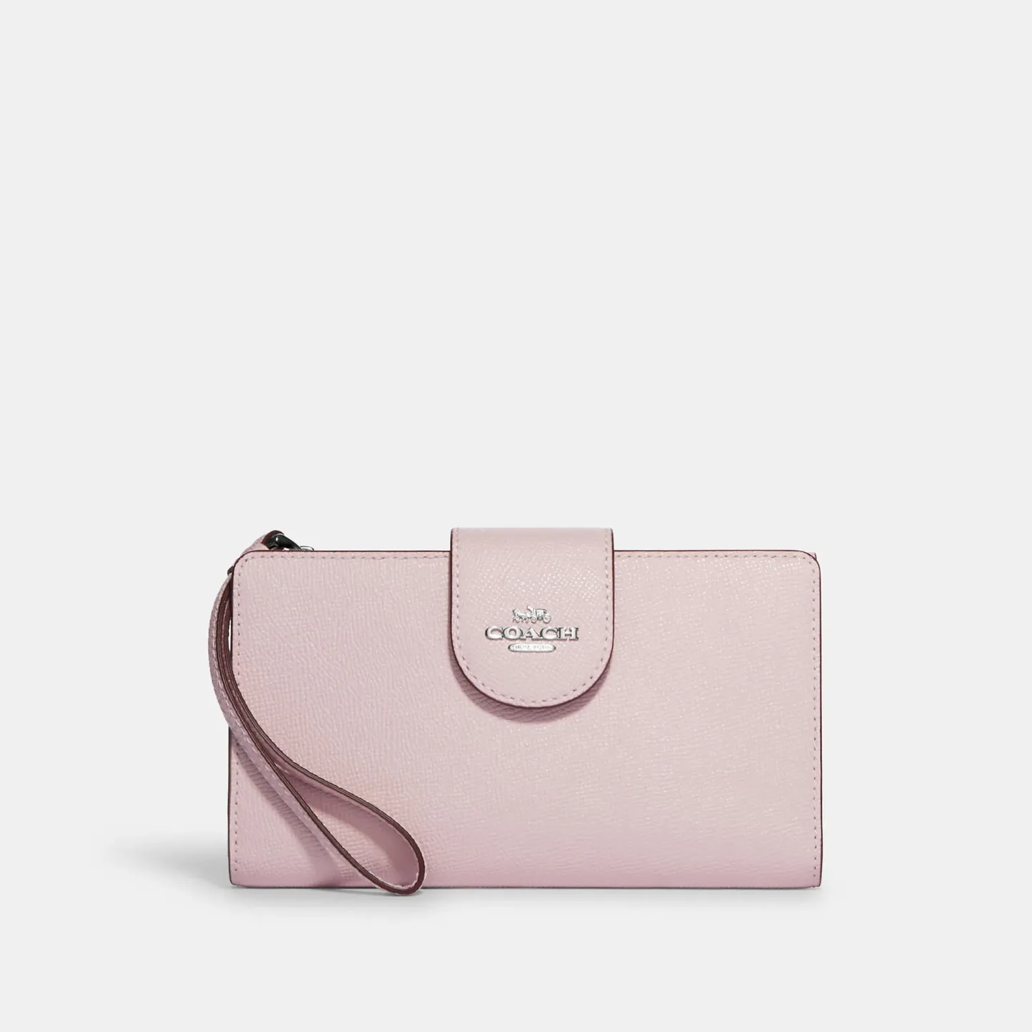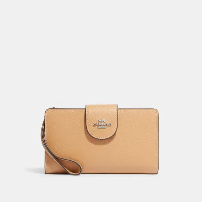 Crossgrain leather Six credit card slots ID window Snap phone compartment Snap closure Outside zip pocket Attached wrist strap 7 1/4 (L) x 4 1/2 (H) Fits all iPhone and Samsung Galaxy phones Style No. C2869 | Outlet Tech Wallet - Brown