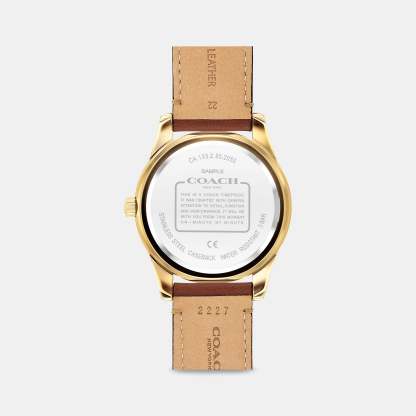Gold tone case and leather strap Approx. case diameter - 42mm Mineral crystal Quartz movement Buckle closure Water-resistant to 99 feet Style No. C6531 | Outlet Casey Watch, 42 Mm - Brown
