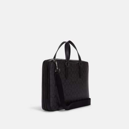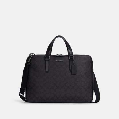 Signature coated canvas and refined calf leather Four credit card slots Inside zip and multifunction pockets Inside laptop sleeve with secure tab Zip closure fabric lining Handles with 5 drop Outside snap pockets Detachable strap with 21 drop for shoulder or crossbody wear 15 1/2 (L) x 11 (H) x 2 1/4 (W) Style No. C8172 | Outlet Graham Slim Brief In Signature Canvas - Black