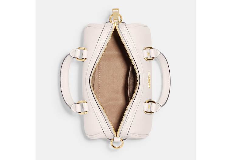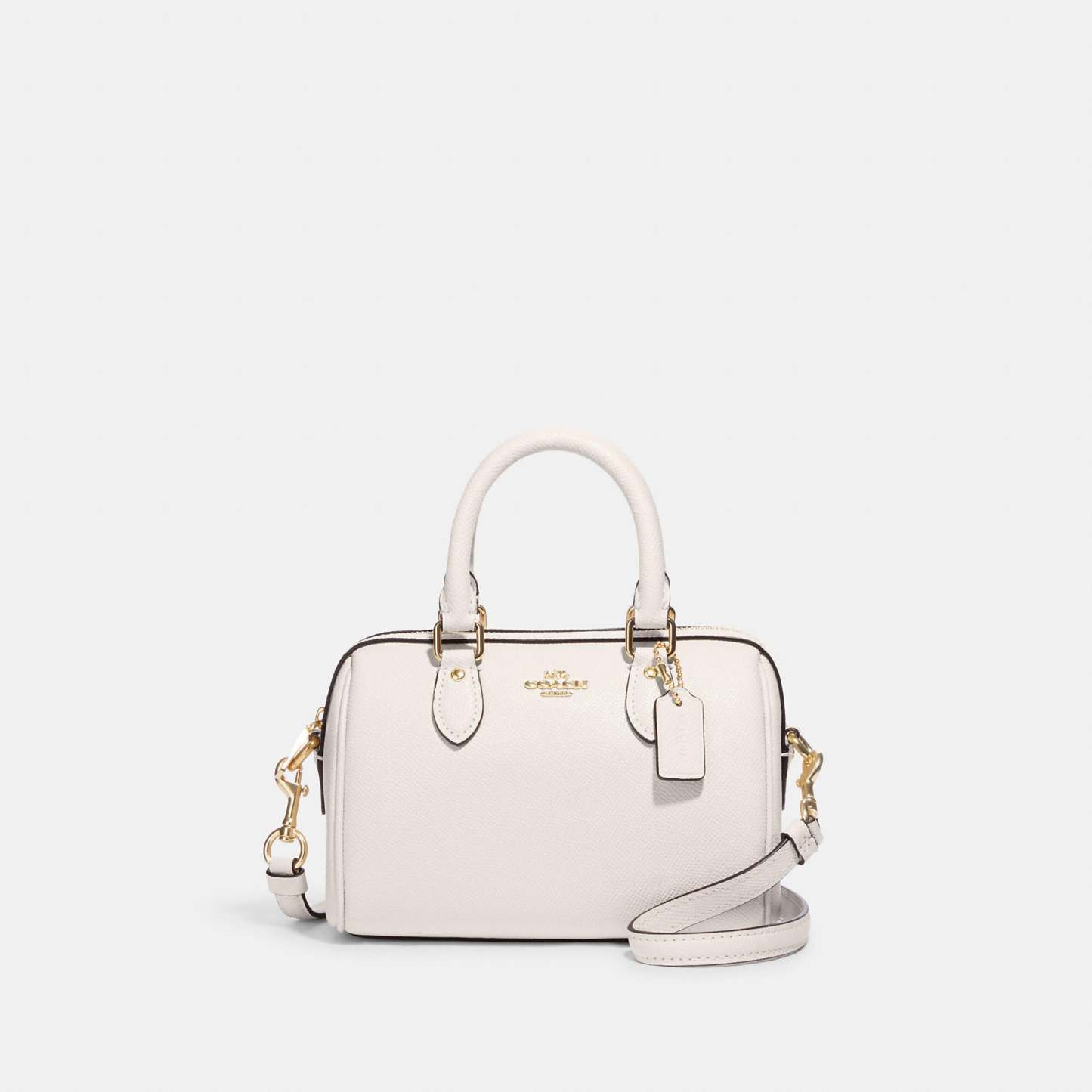 Crossgrain leather Two credit card slots Zip-top closure fabric lining Handles with 2 3/4 drop Outside zip pocket Detachable strap with 23 1/2 drop for shoulder or crossbody wear 7 (L) x 4 3/4 (H) x 4 (W) Style No. CH157 | Outlet Mini Rowan Crossbody - Green