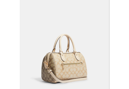 Signature coated canvas and smooth leather Inside zip and multifunction pockets Zip closure fabric lining Handles with 4 1/4 drop Outside zip pocket Detachable strap with 23 drop for shoulder or crossbody wear Four protective feet at base 10 (L) x 6 1/2 (H) x 5 1/2 (W) Style No. CH486 | Outlet Rowan Satchel In Blocked Signature Canvas - Multi