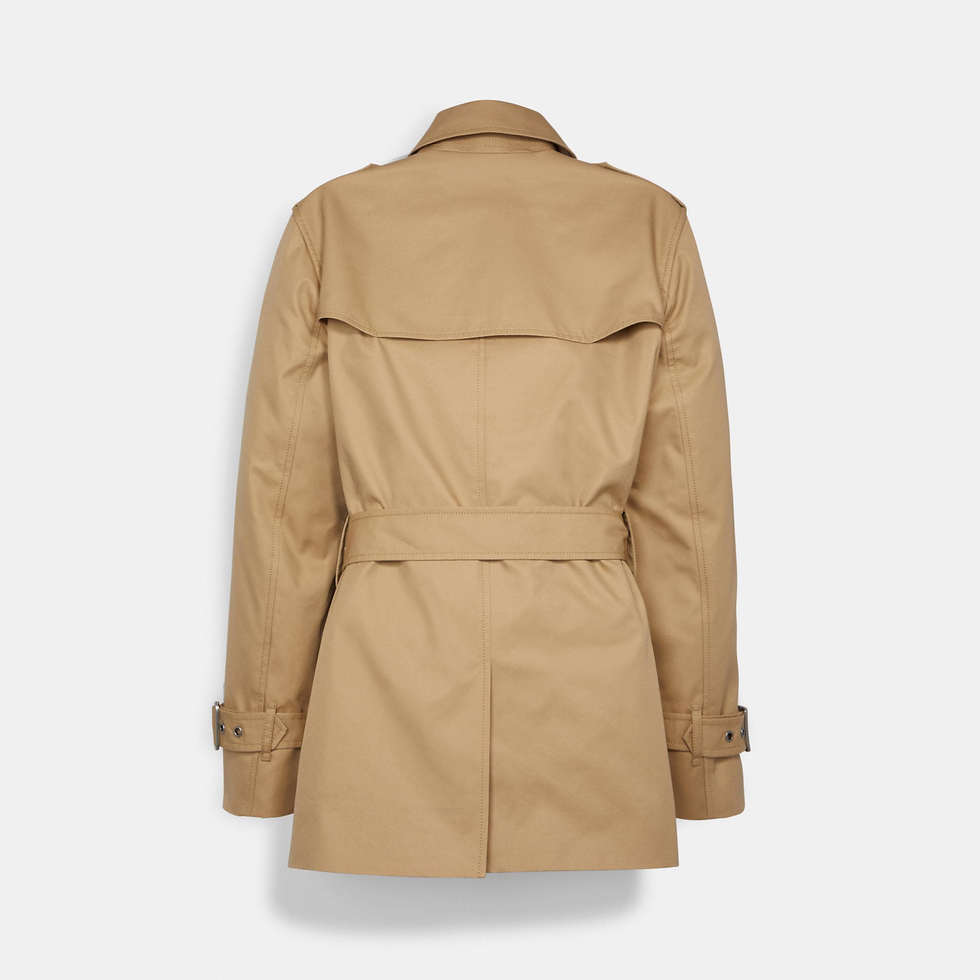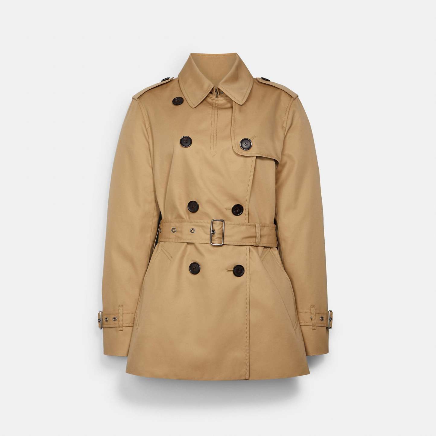 68% cotton 32% polyester Lining - 56% polyester 44% viscose Button closure Slip pockets Adjustable belt Length - 28 1/4 Style No. C8770 | Outlet Signature Lapel Short Trench - Beige, Size - X-Small