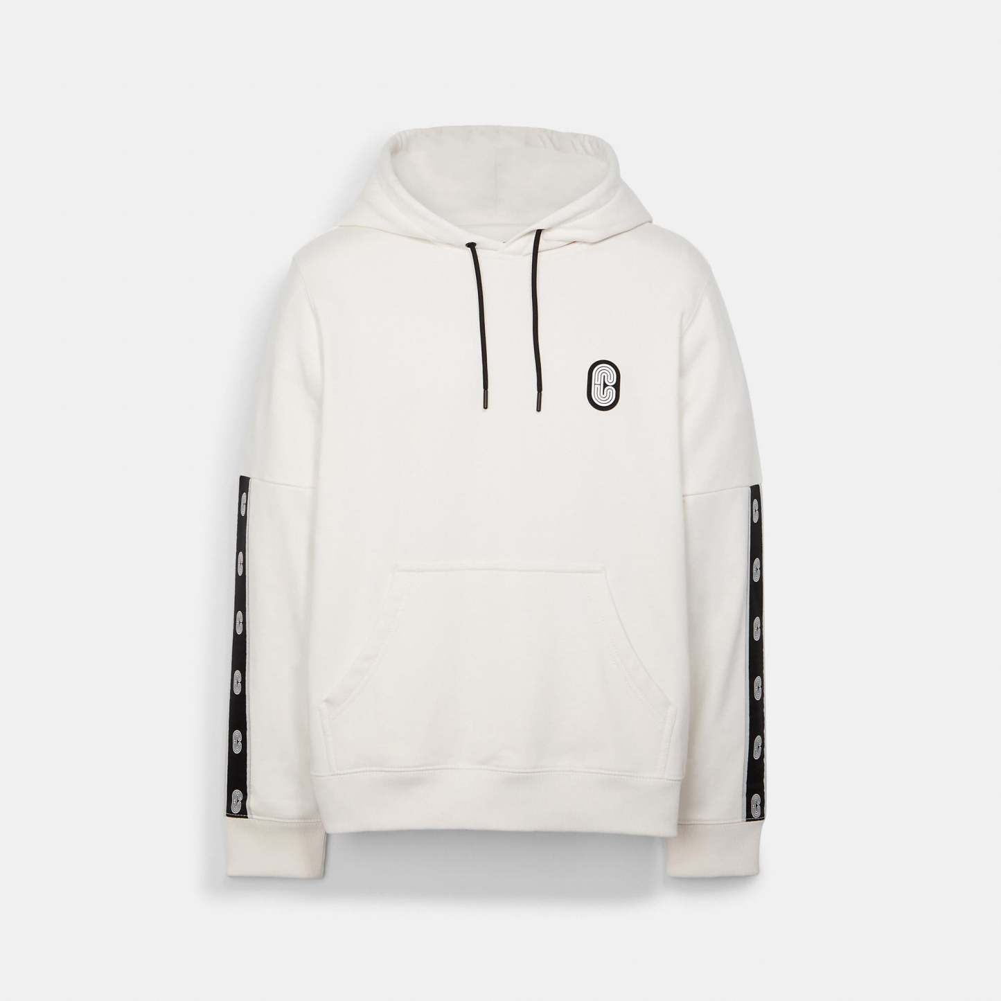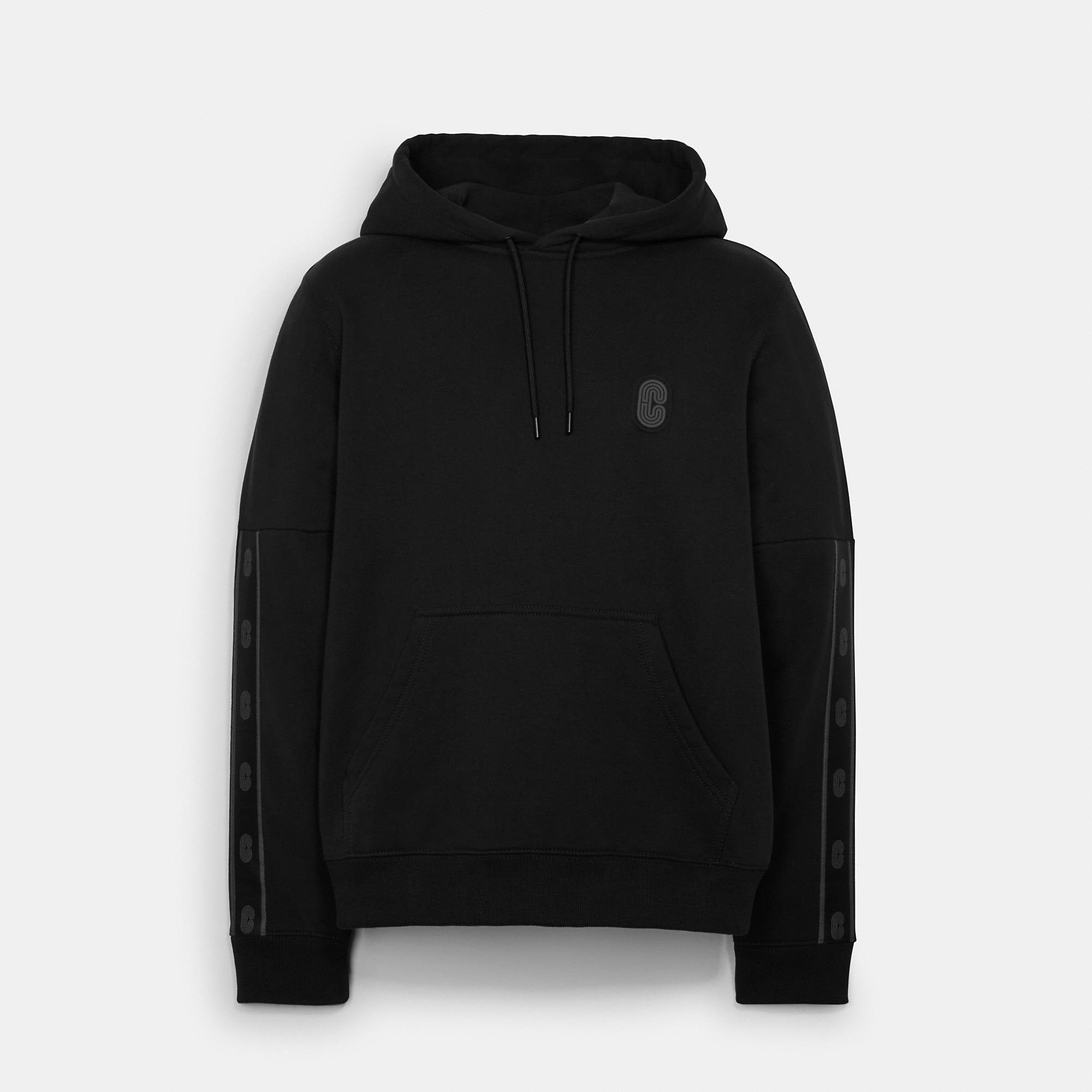 55% organic cotton 45% cotton Kangaroo pocket Length - 27 1/4 Style No. C5231 | Outlet Signature Tape Hoodie - Black, Size - X-Small