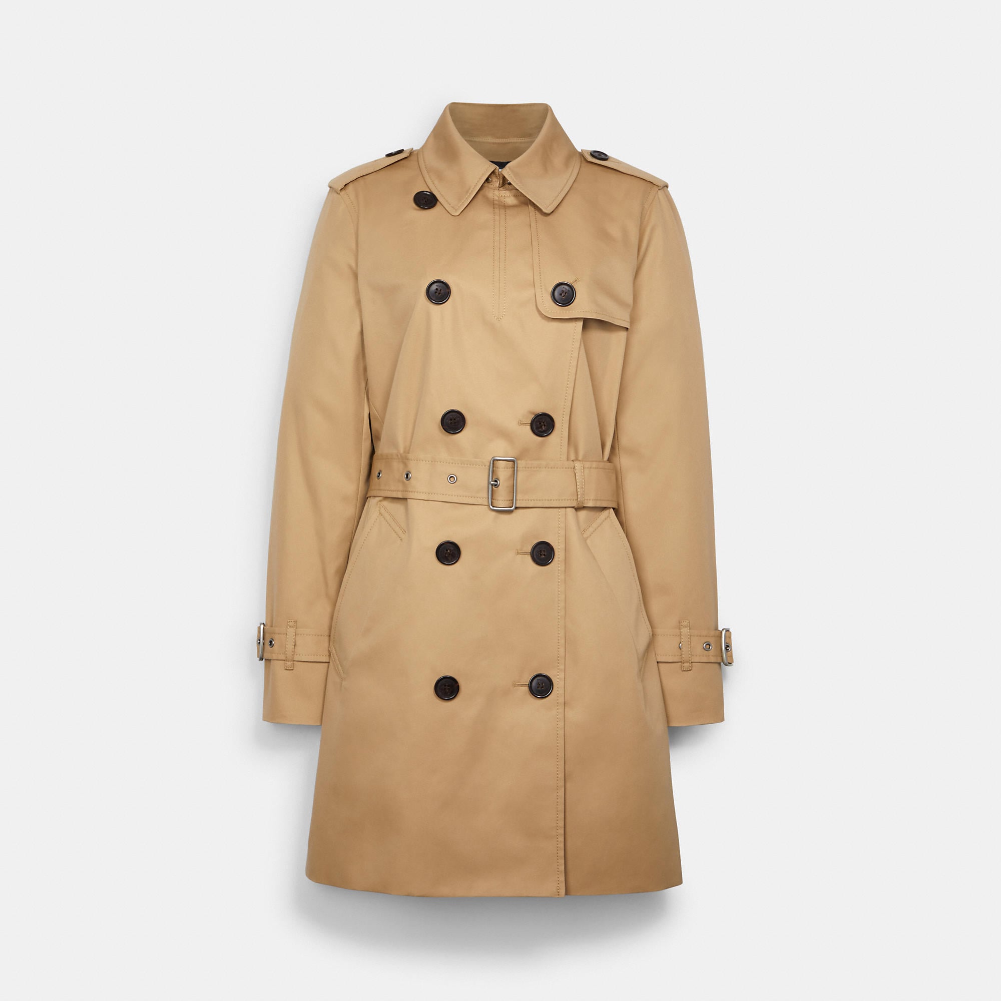68% cotton 32% polyester Lining - 56% polyester 44% viscose Button closure Slip pockets Adjustable belt Length - 33 Style No. C8771 | Outlet Solid Mid Trench - Red, Size - X-Small