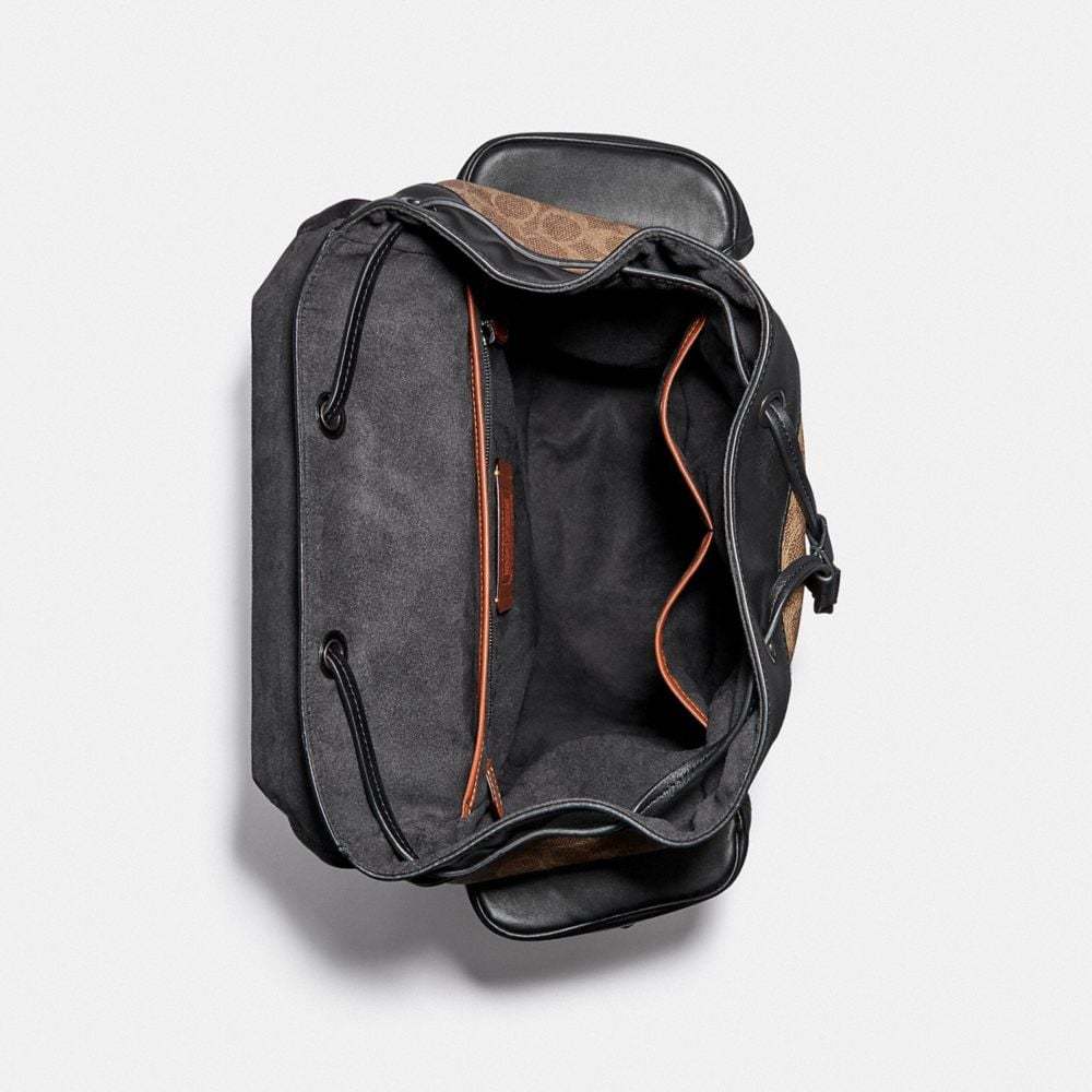 Signature coated canvas, printed coated canvas and glovetanned leather