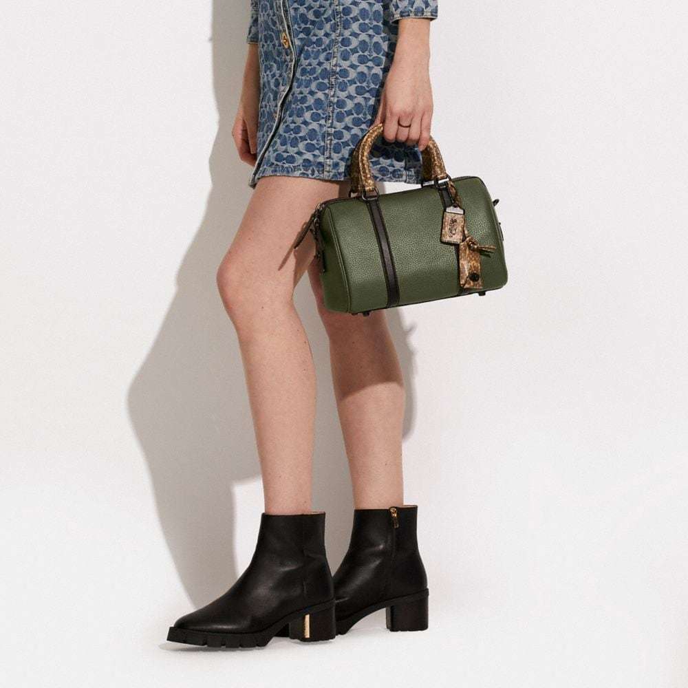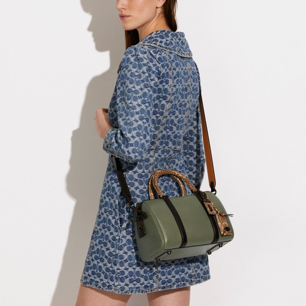 Detachable strap with 21 1/2" drop for shoulder or crossbody wear