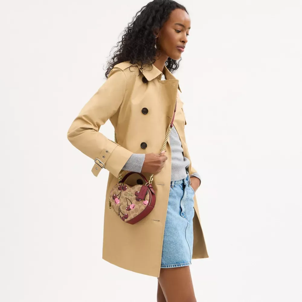 Heart Crossbody Bag In Signature Canvas With Cherry Print