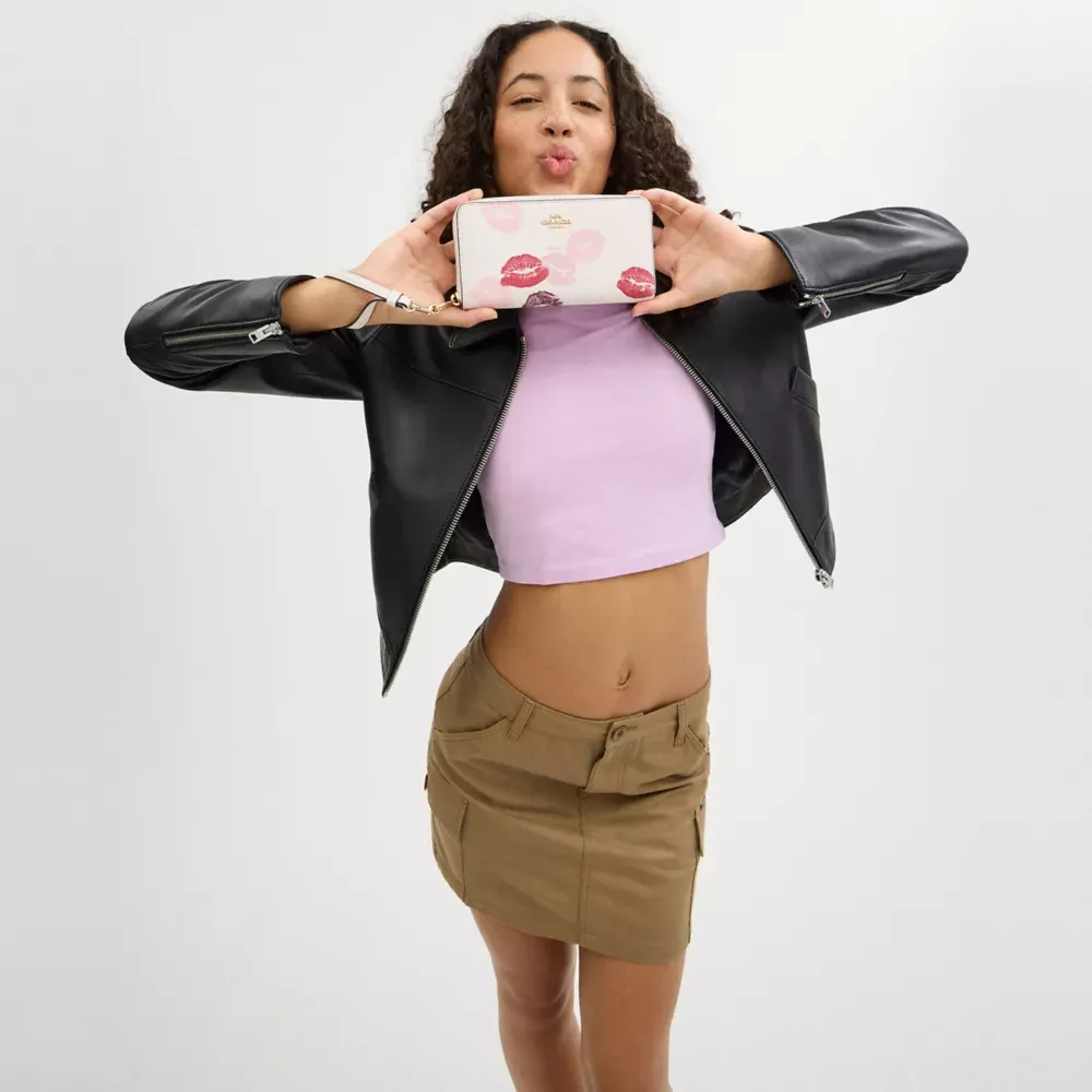 Long Zip Around Wallet With Lips Print