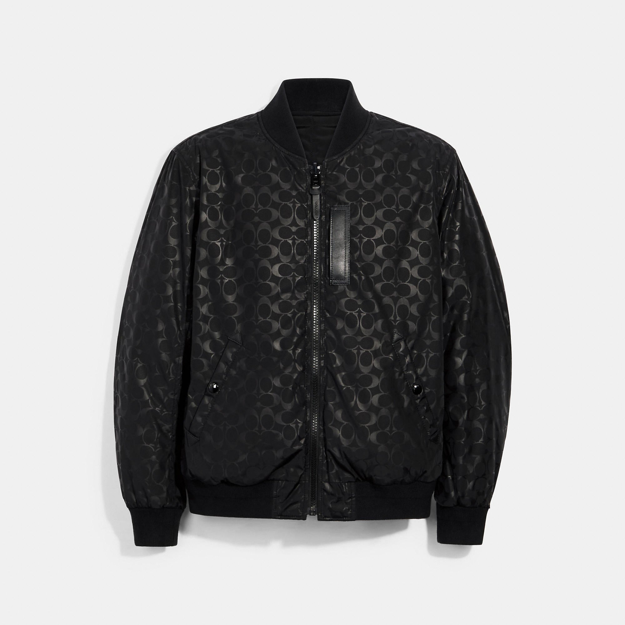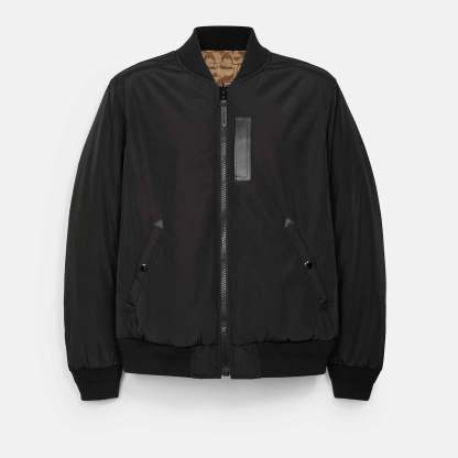 100% polyester Lining - 100% polyester Leather details Zip closure Snap pockets Reversible Water-resistant Length - 27 1/2 Model is 6'2 (188cm) and wears a size M Style No. 3089 | Outlet Reversible Signature Ma 1 Jacket - Blue, Size - X-Large