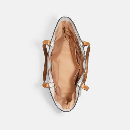 Refined pebble leather Inside zip cell phone and multifunction pockets Drawstring and magnetic snap closures fabric lining Handles with 10 1/4 drop 11 3/4 (L) x 11 1/4 (H) x 5 1/2 (W) Style No. CA165 | Outlet Andy Tote With Horse And Carriage - White