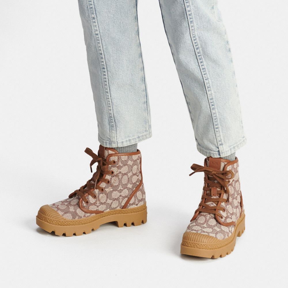 Signature jacquard and leather upper